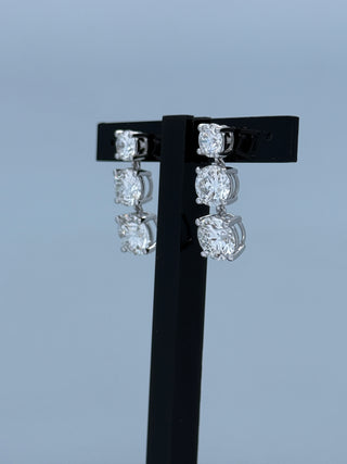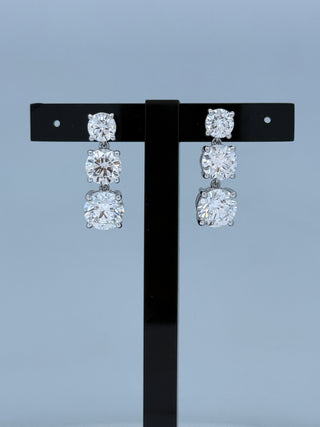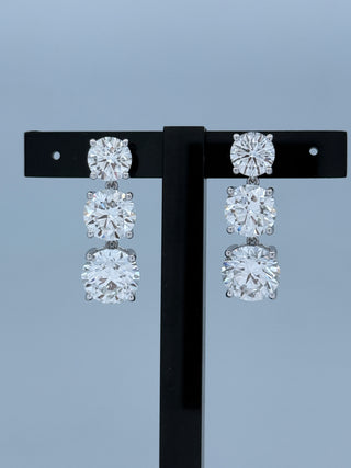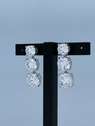 21.14 Carats Triple Drop Round-Cut (LGD) Diamond Earrings in 14K Gold (IGI CERTIFIED)
