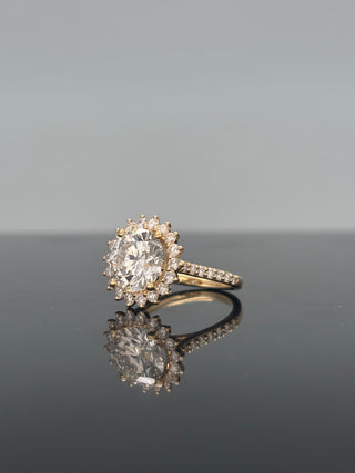 5 Carats Portuguese Cut Lab Grown Diamond Ring with Prong set Diamond on Shank- 14K Gold