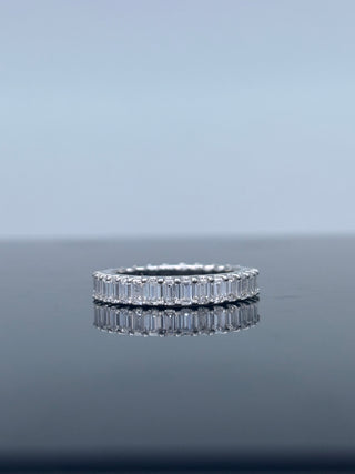8.35 Carats Emerald-Cut Bezel Diamond Ring with Double Halo and Pavé Band in 10K Gold