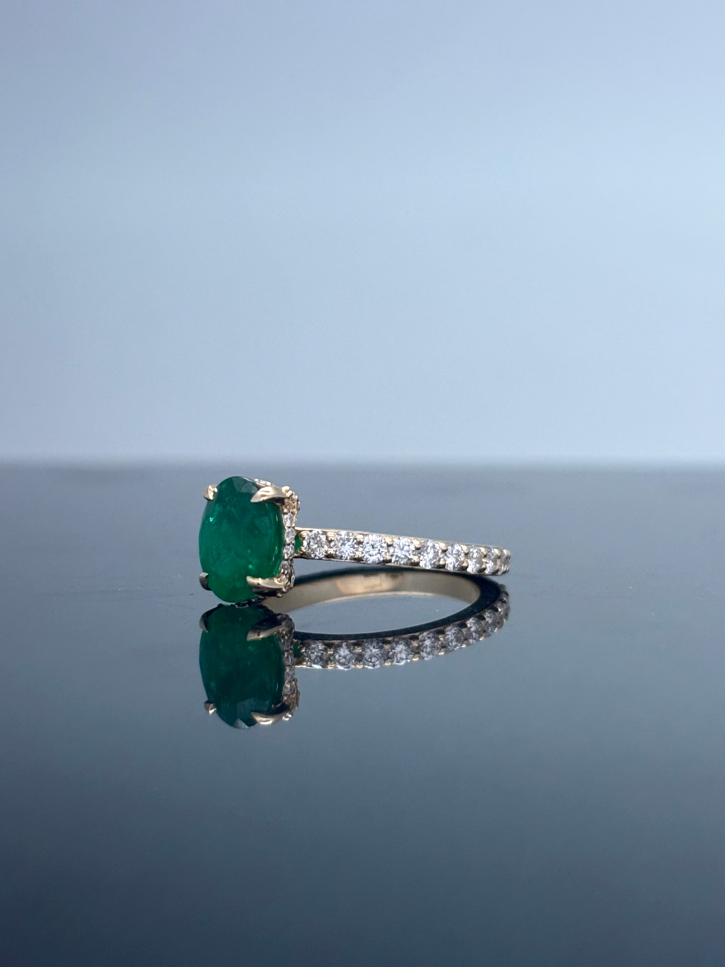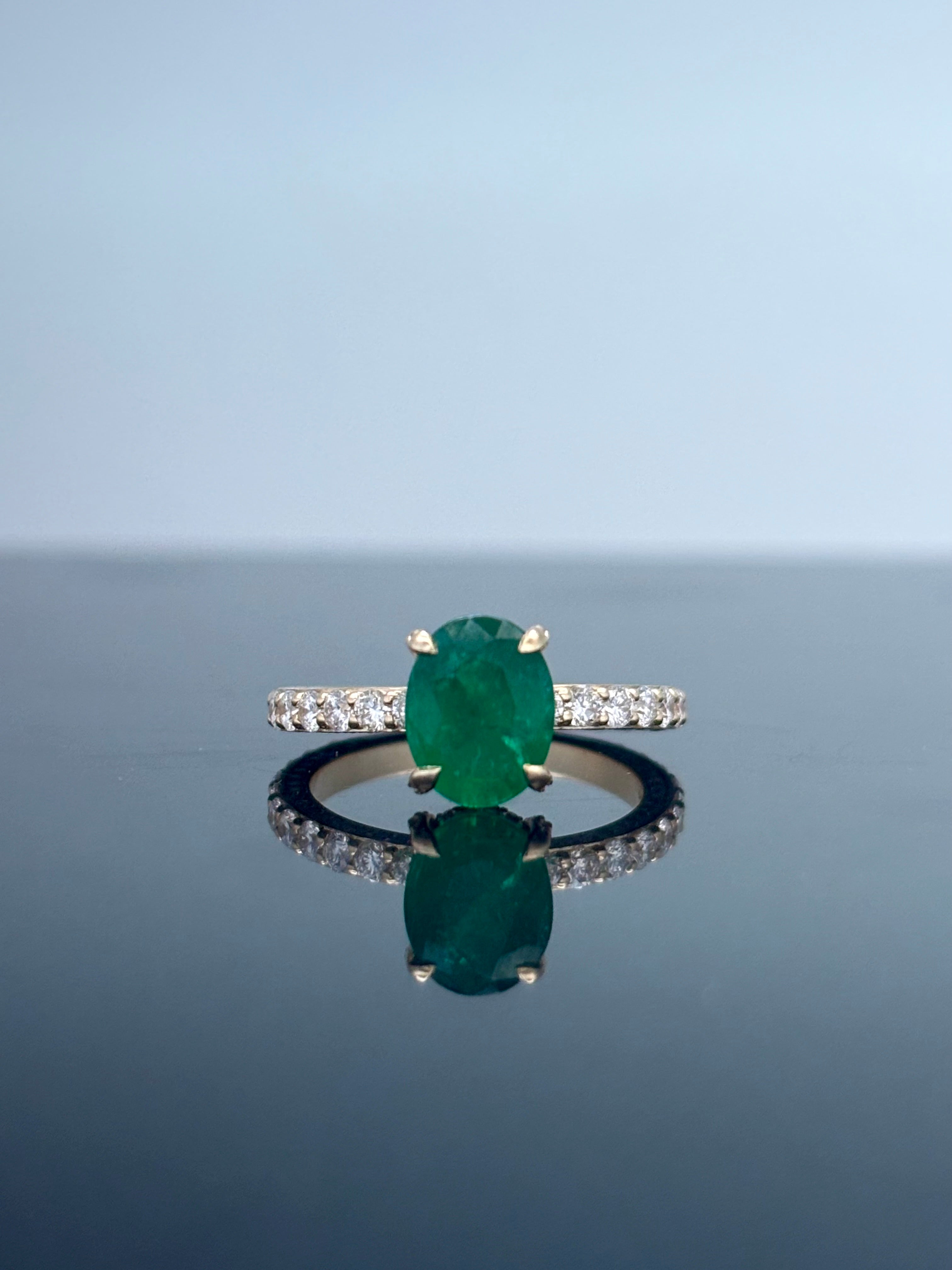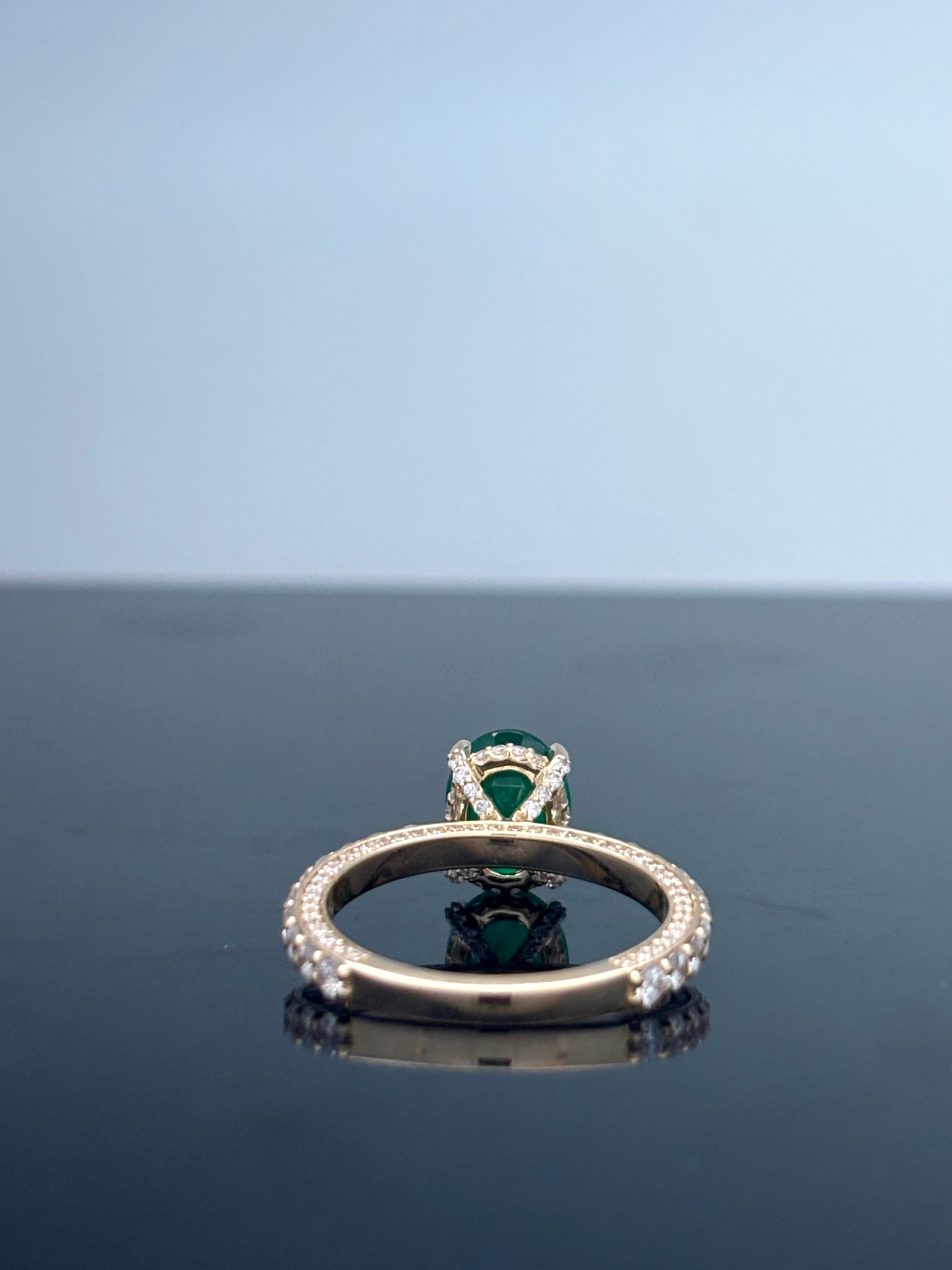 3.23 Carat Classic Natural Oval Cut Green Zambian Emerald Ring Mounted in 14K Gold