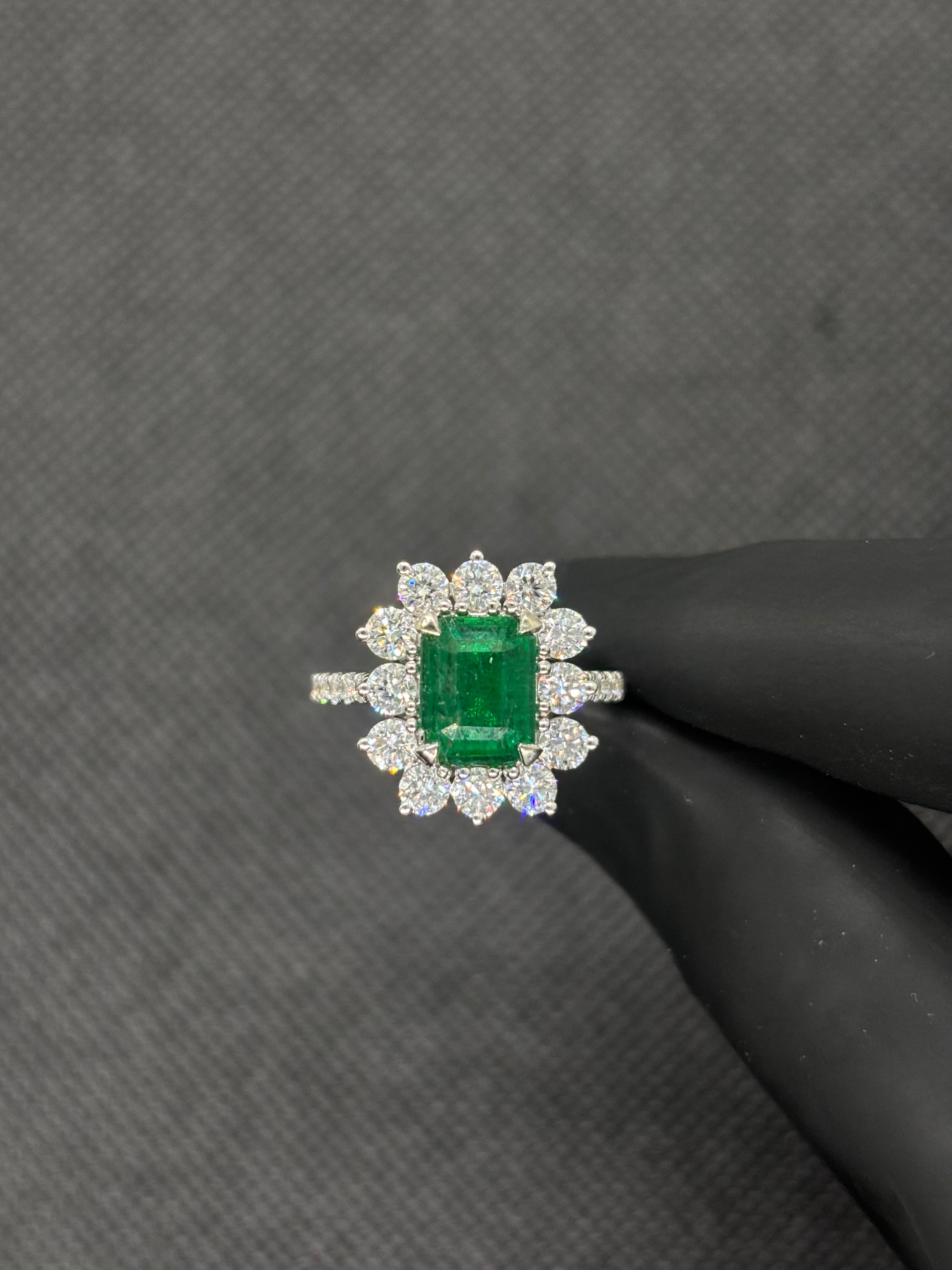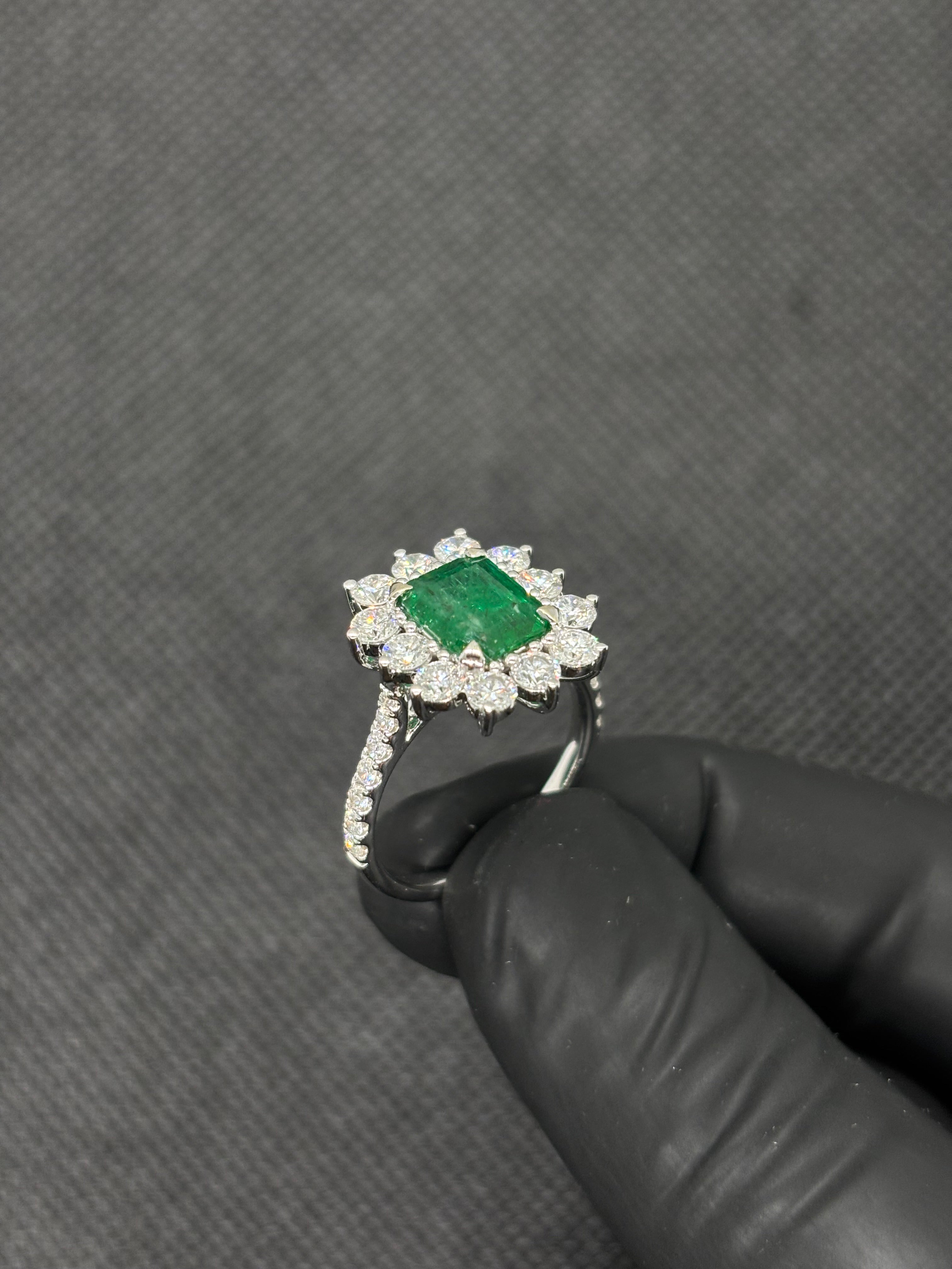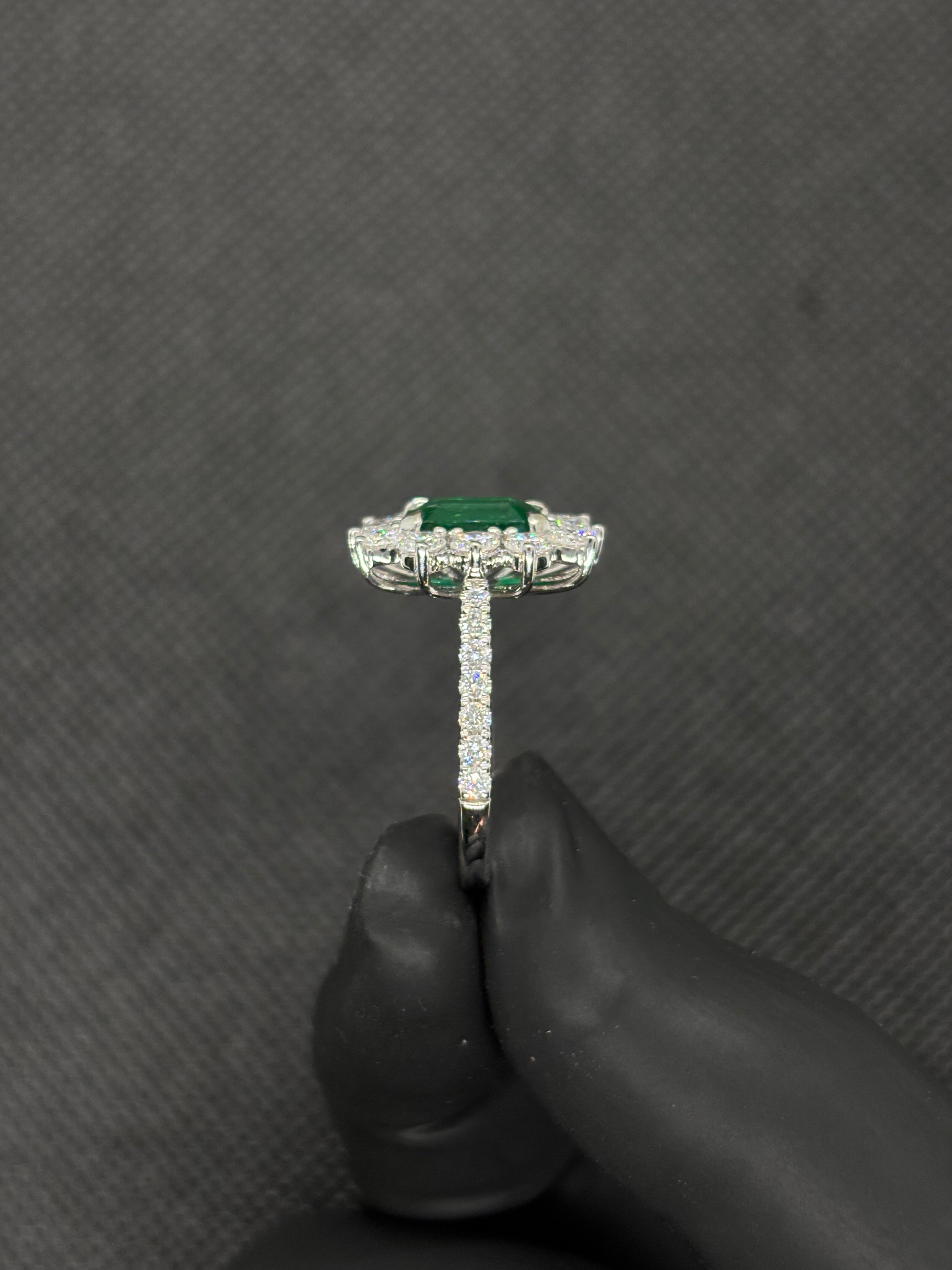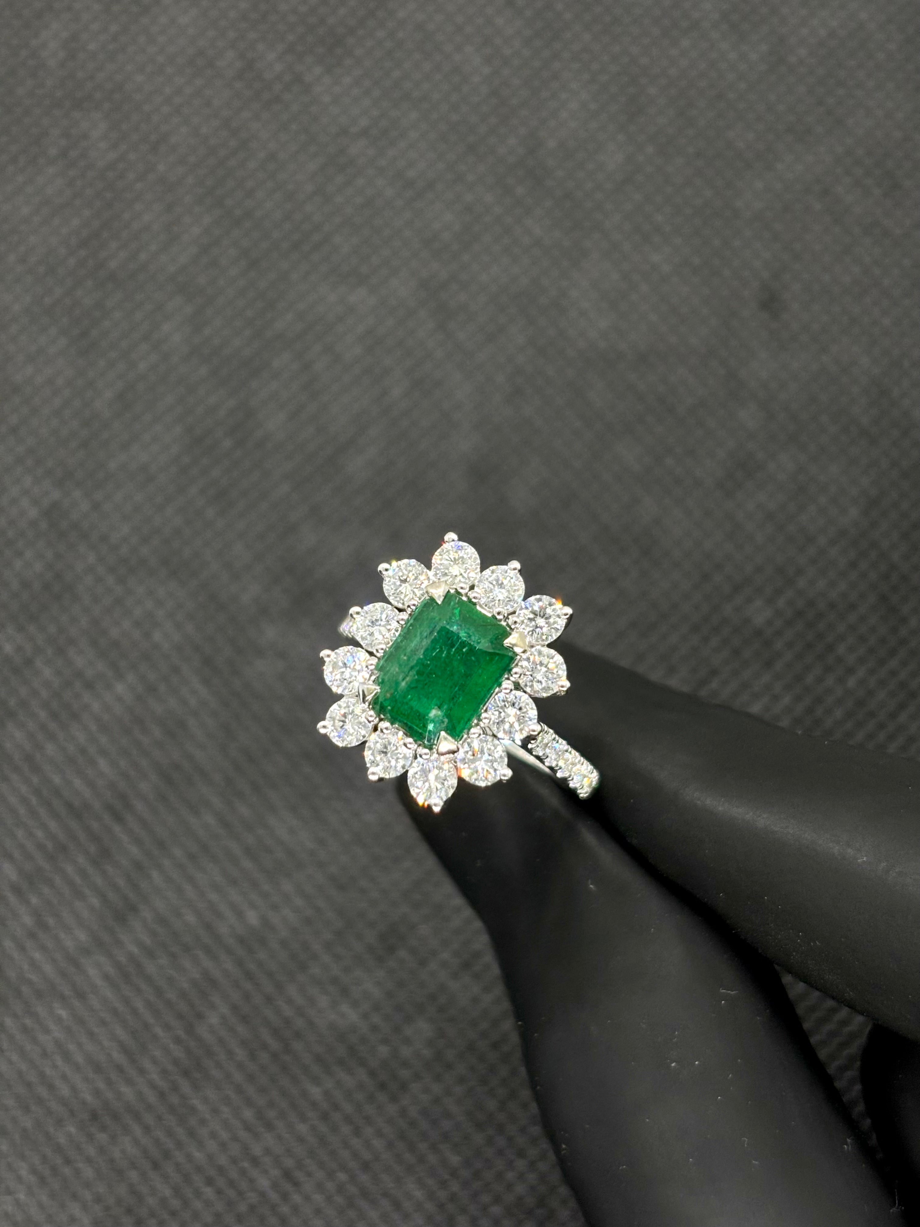 3 Carats Natural Zambian Emerald with LGD Diamonds Ring 14kt Gold