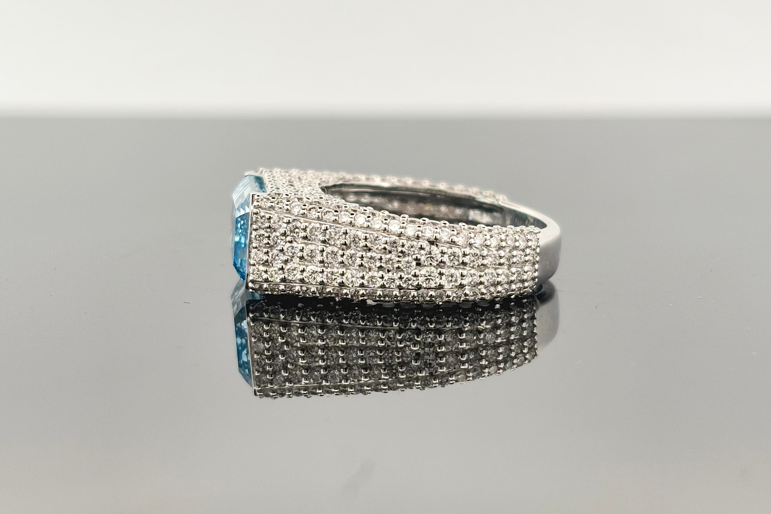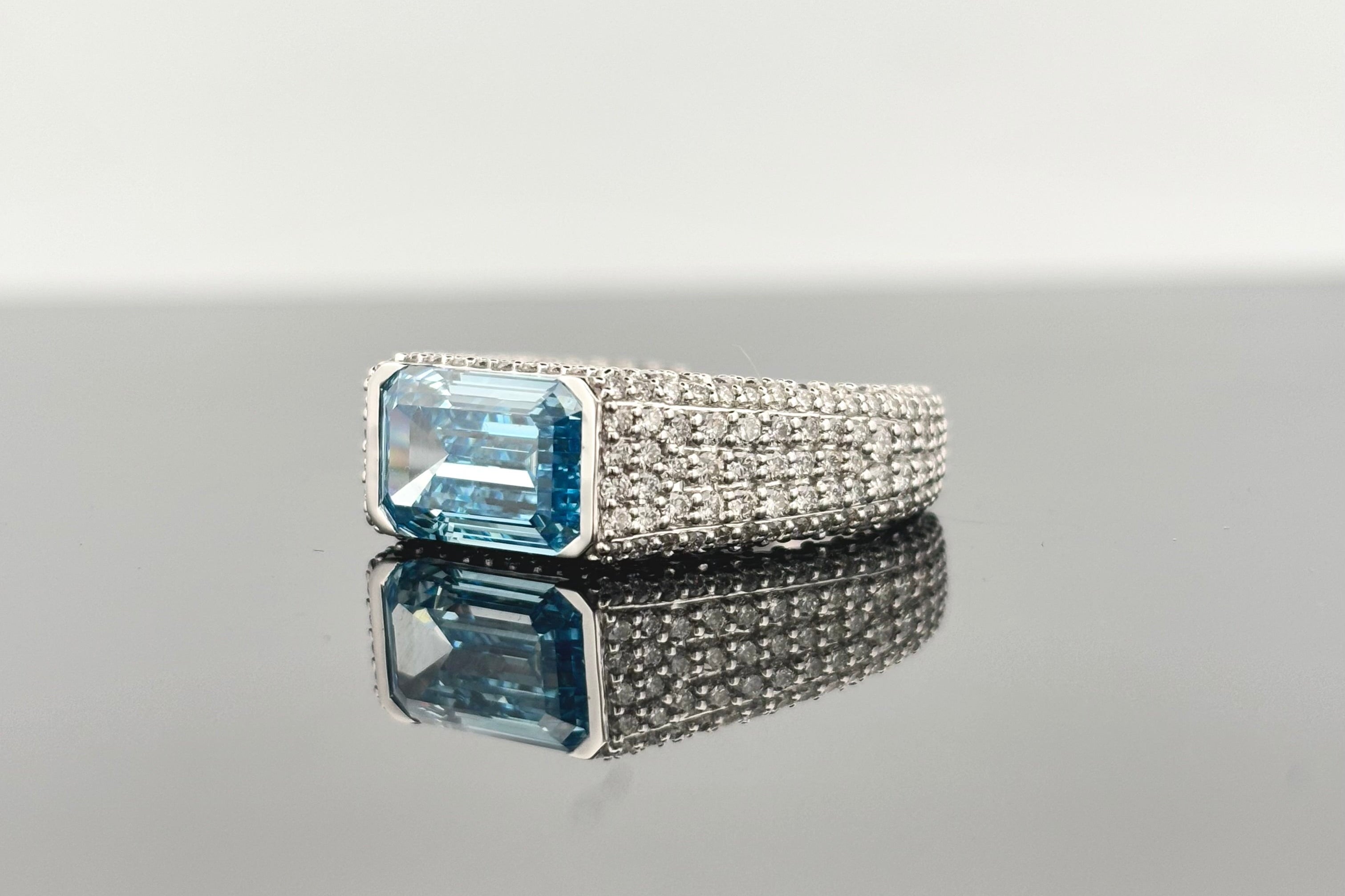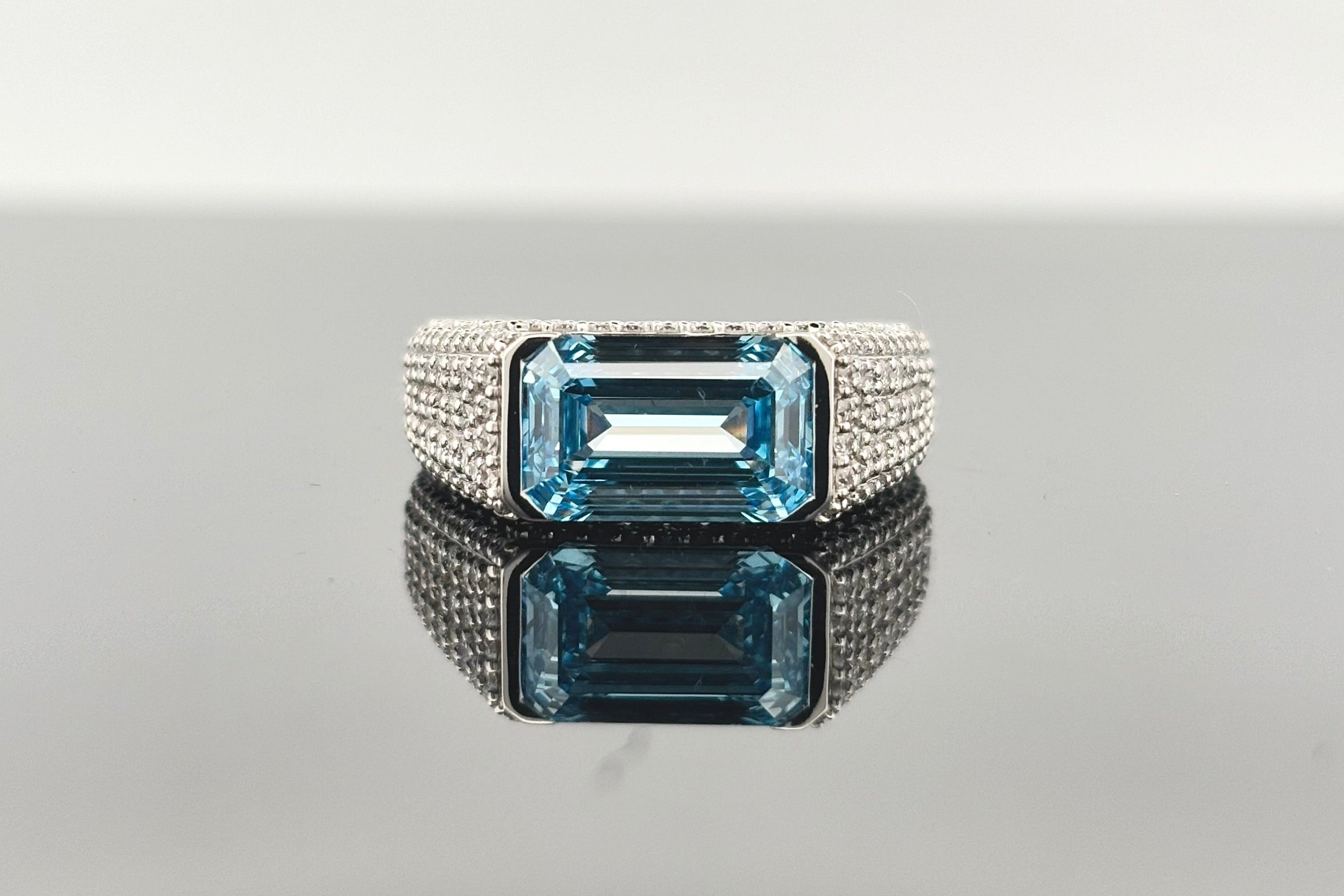 6 Carats Vivid Blue and White Lab-Grown Diamond Ring in 14kt Gold (Emerald & Round Cuts)