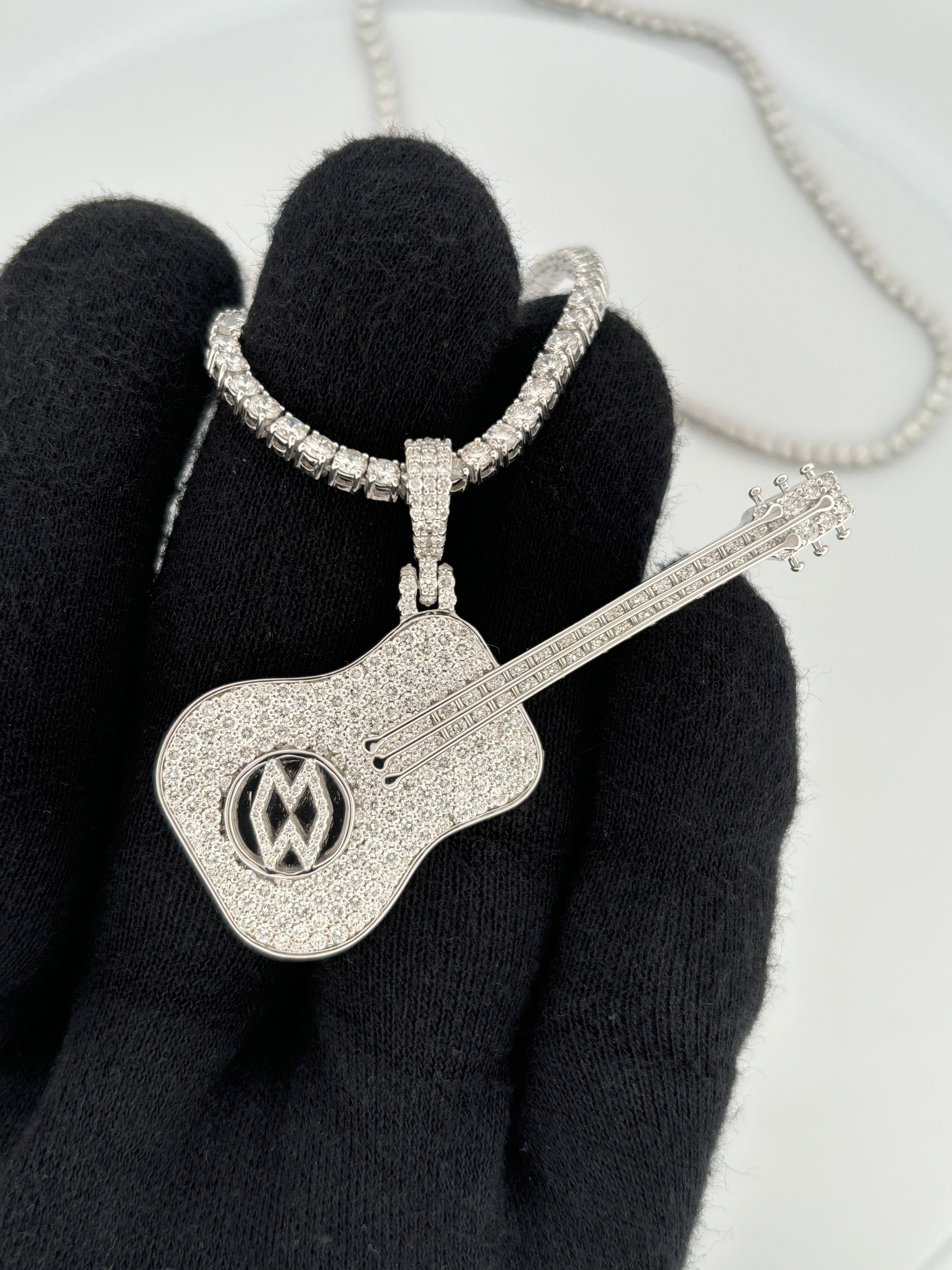 2 Carats Iced-Out Acoustic Guitar Pendant in 14K Gold l Custom Jewelry Pendant